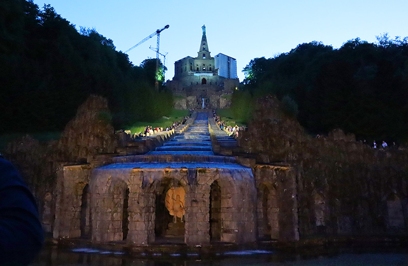 Das Wasser läuft die Kaskaden hinunter