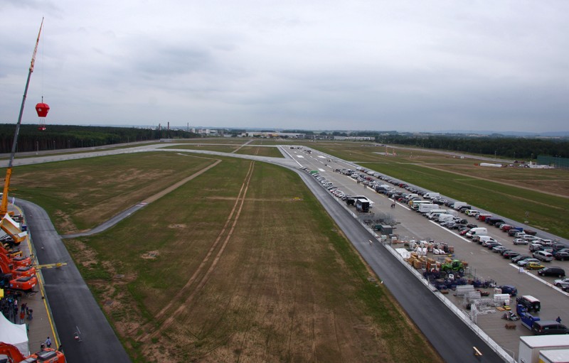 //Blick von oben auf die neue Landebahn in Richtung Kelsterbach